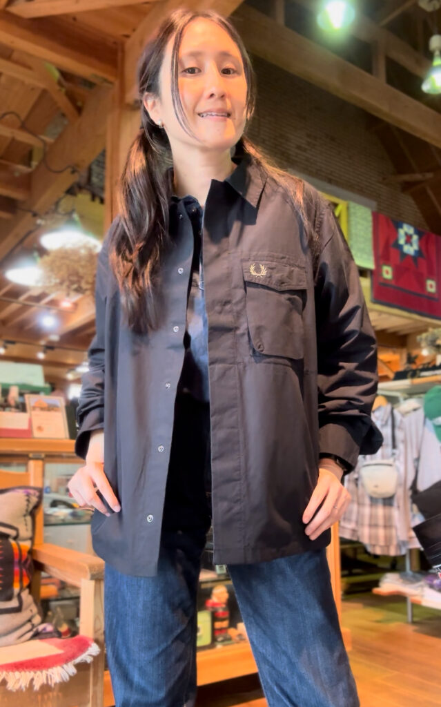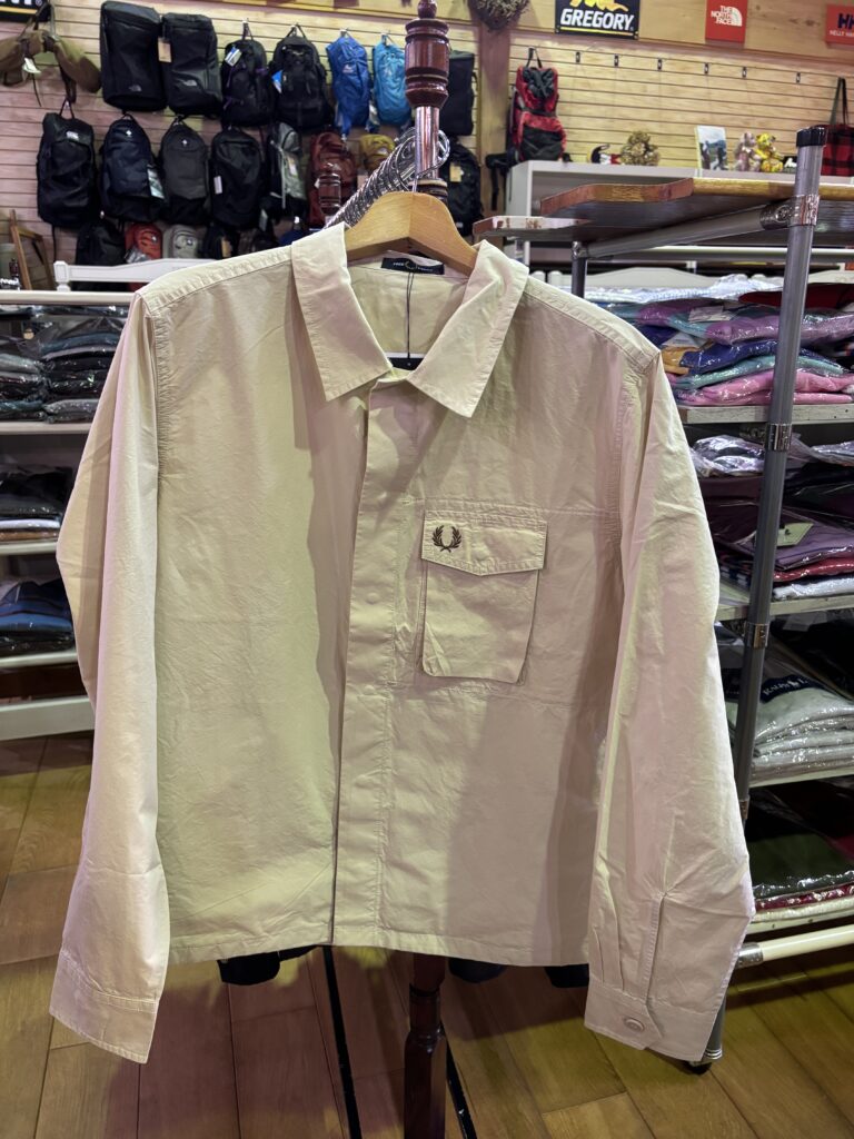 胸元のFRED PERRYマークをチラ見せするも良し。