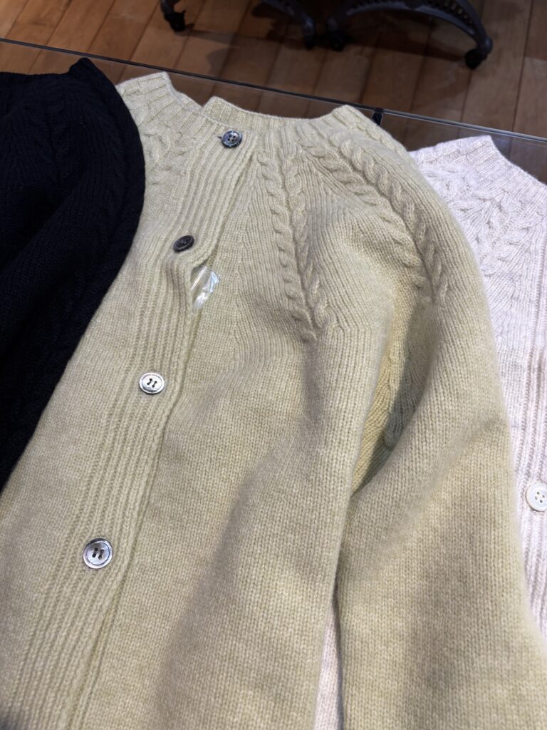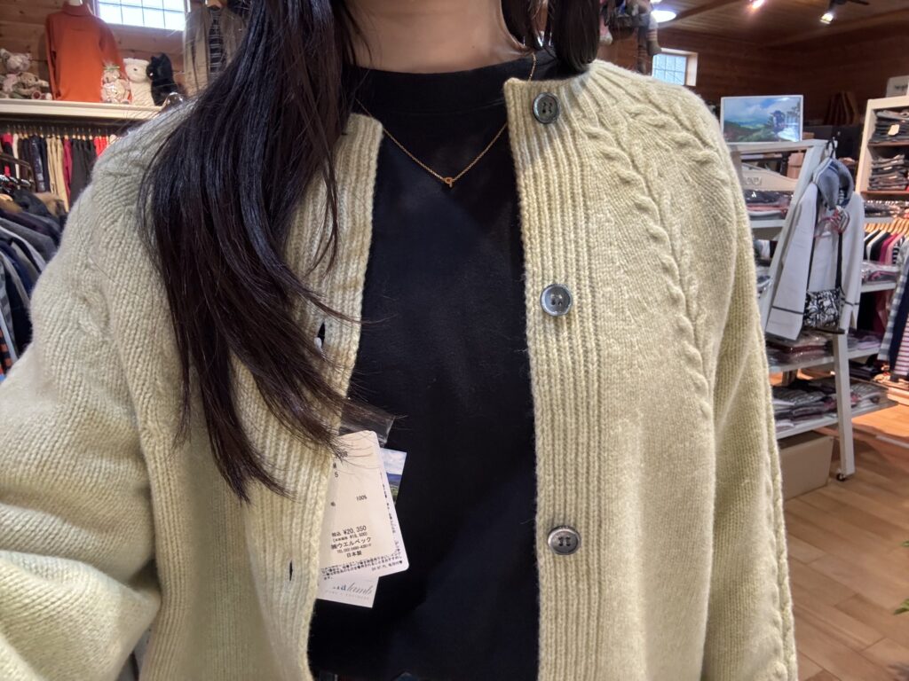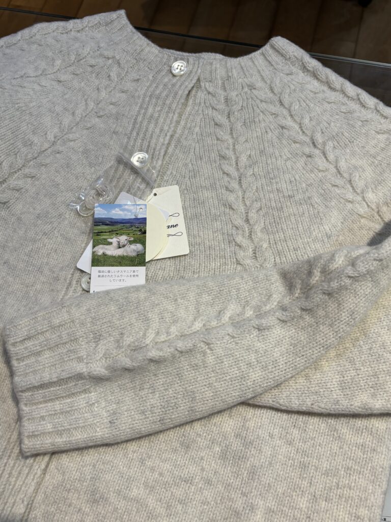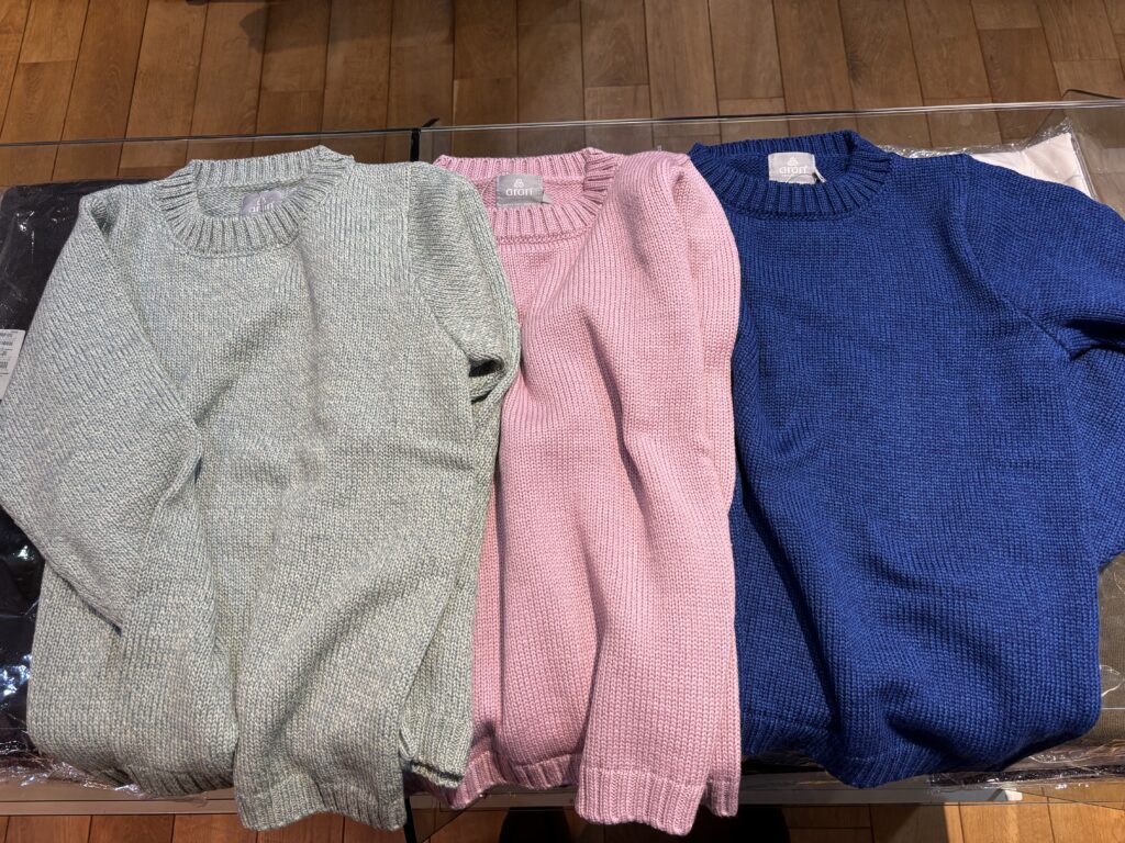 毎年可愛いニットをセレクトしています!今年のアランニットは、なめらかな質感のクルーネックニット。