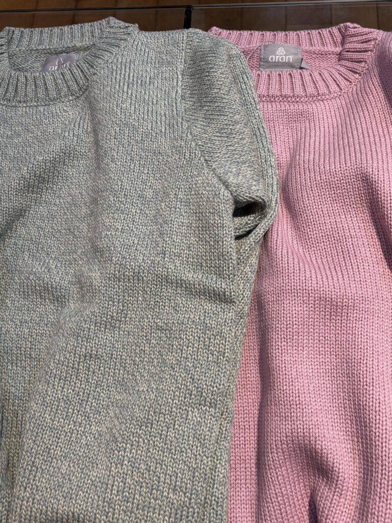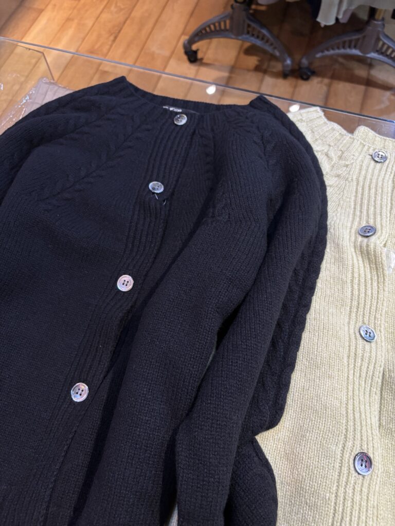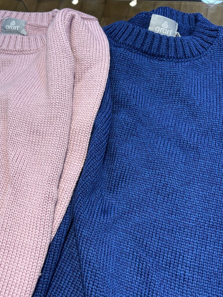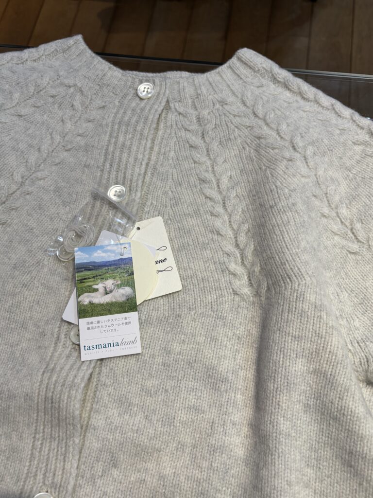 毎年可愛いニットをセレクトしています!今年のアランニットは、なめらかな質感のクルーネックニット。
