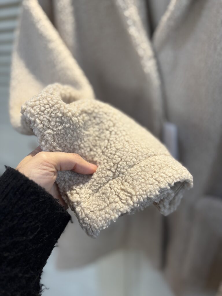 中わた入りなので暖かいまま、ジャケットのようにかっちりした印象にすることができます。